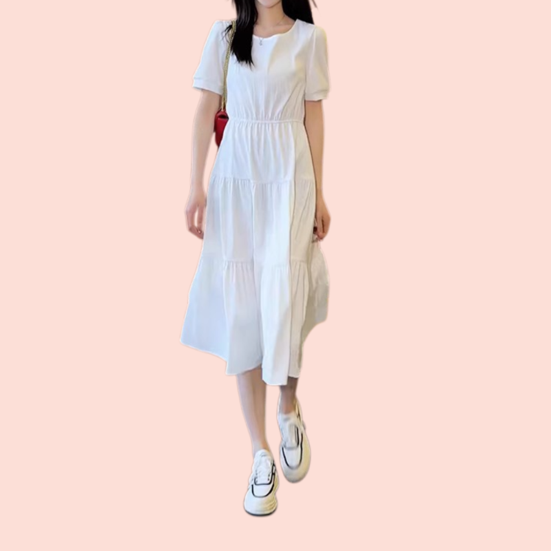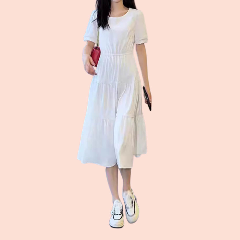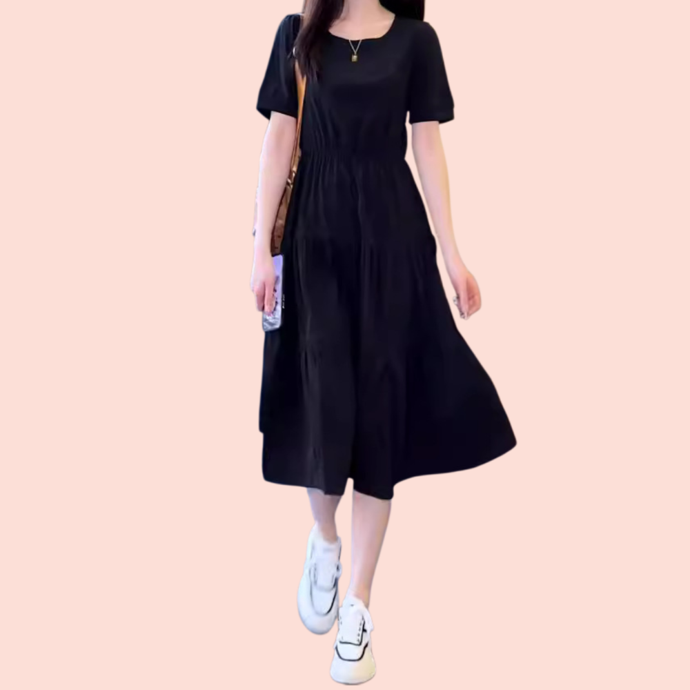 ミディアム丈のウエストを絞ったスリムなカジュアルドレス